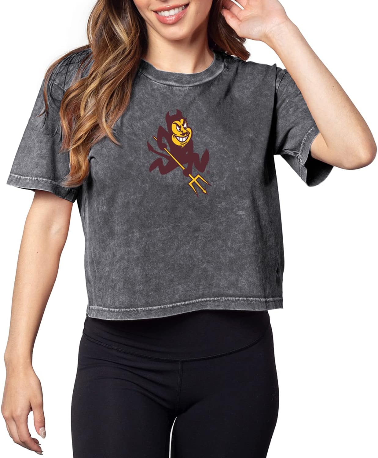 This on trend cropped tee is perfect for gameday or lounging! This style features a cropped silhouette with short sleeves and rounded neckline. Support your favorite team while staying on-trend with the NCAA officially licensed graphic.
