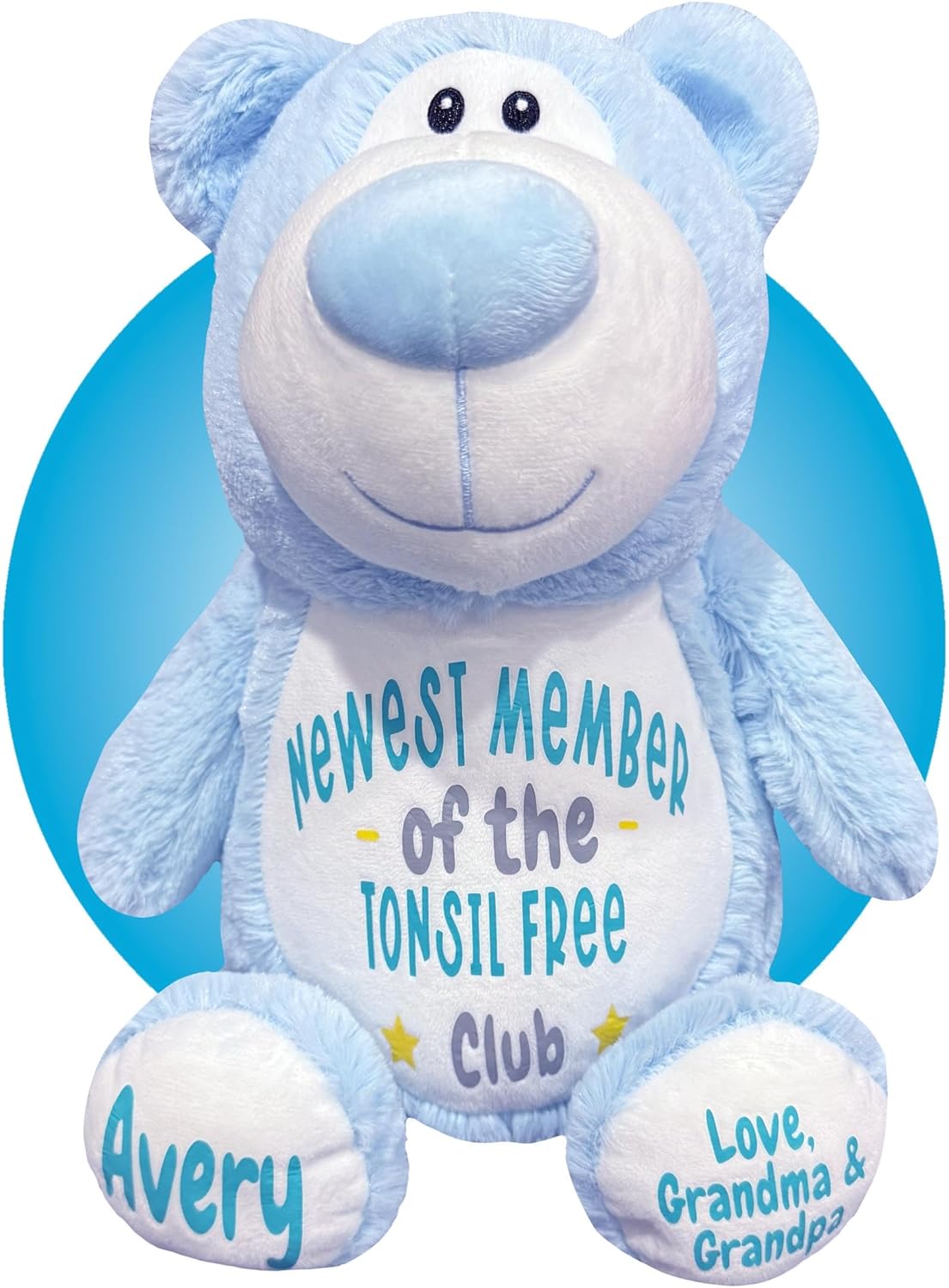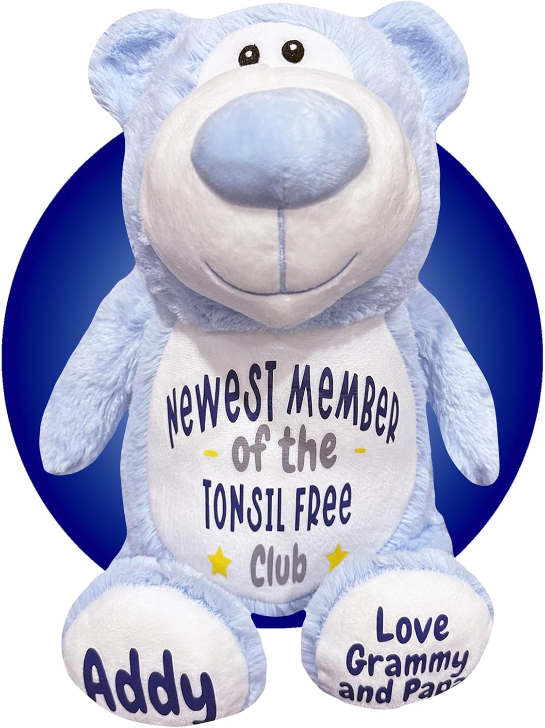 Introducing the remarkable 17" Tonsillectomy Get Well stuffed teddy bearsby Kikilishop – the epitome of awesomeness! These extraordinary plush companions are incredibly soft, huggable, and perfect for anyone undergoing a tonsil removal surgery.In a world filled with mundane, mass-produced get well gifts, our plushies stand out as remarkable and distinctive tokens of care. They reflect the pride and joy the recipient will feel, making recovery a little brighter and more special.Comforting Companions:Soft and Huggable: Crafted from premium materials, our stuffed animals provide a comforting and soothing embrace.Personalized Touch: Personalize your plush with a name and message on the feet or leave it blank. Choose from over 20 different colors for personalization with high-quality heat transfer vinyl, ensuring a truly unique and memorable gift.Special Message: Each stuffed animal proudly displays the phrase "Newest Member of the Tonsil Free Club" on its chest, adding an extra layer of charm and personalization.Removable Inner Pods: These stuffed animals come with two inner pods that can be easily removed, allowing you to wash the outer skin and keep it clean and fresh.Hot/Cold Water Bottle Compatibility: For added relaxation during recovery, place a hot or cold water bottle inside the stuffed animal's skin to provide soothing comfort. This feature is especially important post-surgery to help ease swelling.Thoughtful Gift:Elevate the spirit and make recovery a little brighter with our exceptional Tonsil Free stuffed animal collection. These plushies exude warmth, thoughtfulness, and a touch of personalized charm.