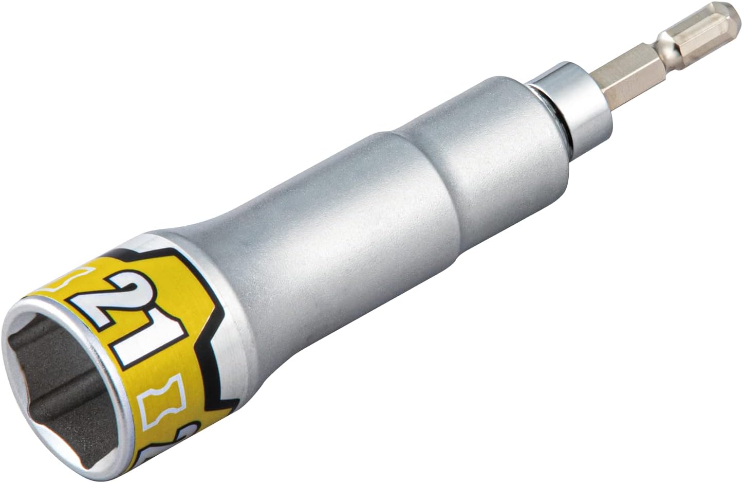 This is a heavy duty impact driver socket bit that is compatible with impact drivers up to 40V. Flex type that can be tightened at 15° oscillating corners that make impact drivers difficult to enter. The socket part has a 15° tilting structure, making it useful for tightening in places where impact drivers are difficult to get in, such as walls and corners. Adopts a bit tip shape that allows smooth insertion and removal of impact drivers. Includes a drop prevention function that allows you to safely perform work in elevated places such as temporary scaffold and steel bones. The socket itself has a drop prevention function, so there is no need for additional equipment such as a drop prevention belt, and just like a normal socket bit, it can be attached with a single touch, making it safe and comfortable. KTC's unique "fallen mechanism" that will break inside the socket, and the broken bits will stop falling out. Even if the bit is damaged, the bit will not remain in the chuck, and the impact driver can be smoothly detached. The aperture is designed to prevent concentration and prevent damage to the edges of the bolts and nuts, and the power fit shape allows for more secure tightening and loosening work. The unique structure of the bit has a torsion effect and further extends the fuse part than previous models. Can be used with KTC cordless impact drivers (JTAE115A) and cordless impact drivers with a 1/4" (6.35 mm) diagonal hexagonal side chuck. The bit tip shape has been improved than previous models, allowing for smooth insertion into the impact driver. Cannot be used for tightening and loosening car wheel nuts.