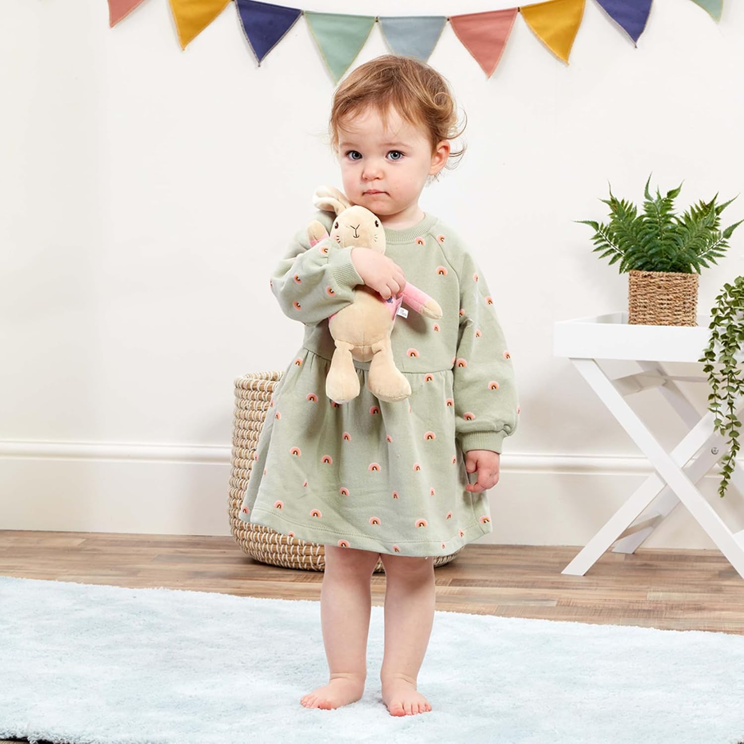 From the classic Beatrix Potter books this beautiful Flopsy Bunny soft toy is made from premium soft plush to ensure she is as gentle against babies skin as can be. Flopsy Bunny is as seen in the original illustrations and is wearing her signature Pink jacket with a cute embroidered butterfly motif. Flopsy has embroidered facial features, a cute Flopsy Bunny logo on her foot and is hand washable so makes a perfect gift for newborns or decoration piece for Nurseries. Also available in this beautiful nursery collection are Peter and Flopsy Bean Rattles, My First Peter Rabbit, Peter Rabbit Comforter, Peter Rabbit Jack in the box, Pull along Peter, Musical Peter Rabbit, Book Ends, Peg puzzle and Dominoes